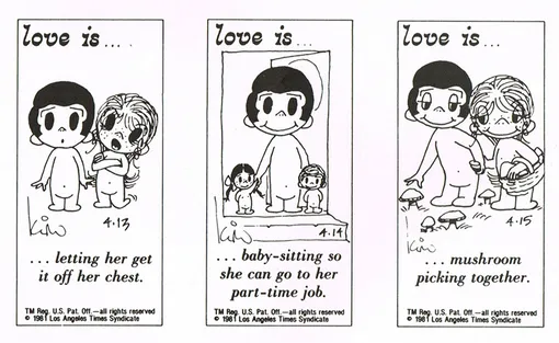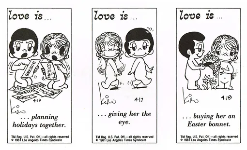 Персонажи саги «Love is...» проходят разные стадии отношений — от знакомства до супружеской пары и смерти одного из героев.