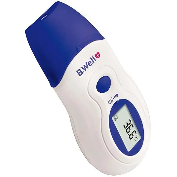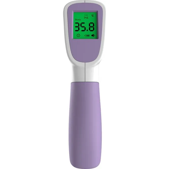 Измеритель температуры тела относится к виду бесконтактных, работающих с помощью инфракрасного излучения. Он имеет встроенную память на последних 50 использований, которые можно посмотреть на ярком дисплее с подсветкой. Минимальная температура измерений составляет 34 °C , а максимальная — .43°C. Погрешность показателей при правильном использовании составляет всего 0.1 °C. Термометр учитывает температуру помещения, поэтому вероятность неточных показателей сводится к минимуму.