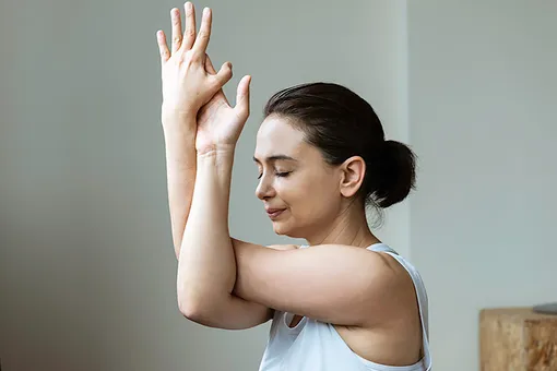 Сутулость и напряжение в верхней части спины – бич офисных работников. Простое упражнение «орлиные руки» можно выполнять даже в перерыве между совещаниями.