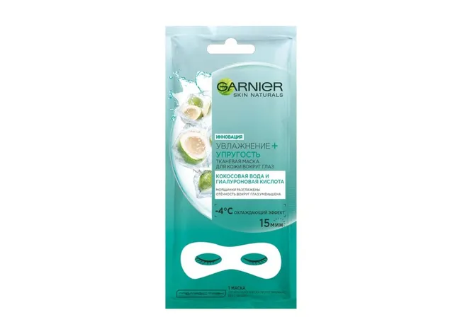 Для выраженного противоотечного эффекта в области вокруг глаз можно использовать не только патчи, но и полноценную маску для век. Например, эта тканевая маска Garnier вмиг охлаждает кожу на 4 градуса, а если хранить ее в холодильнике, действие будет еще мощнее! В состав средства входят гиалуроновая кислота и кокосовая вода для увлажнения, а также экстракт камелии, который помогает бороться с краснотой и раздражением.