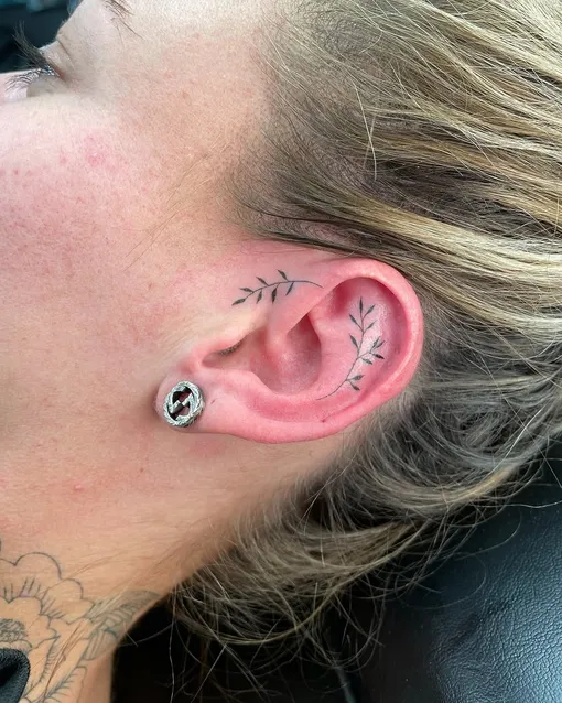 Область вдоль завитка или мочки уха можно украсить созвездиями, абстрактными фигурами или простыми линейными рисунками, которые будут добавлять твоему образу нежный и игривый штрих.