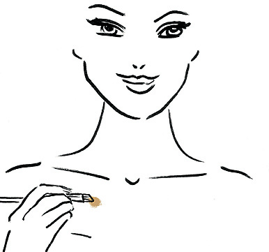 2. Замаскируй проблемные места зоны декольте (прыщики, пигментные пятна) консилером, используя тонкую заостренную кисть. Зафиксируй слоем прозрачной пудры.