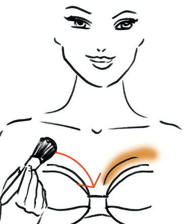 3. Надень платье и нанеси бронзовую пудру над каждой грудью дугой от подмышек.