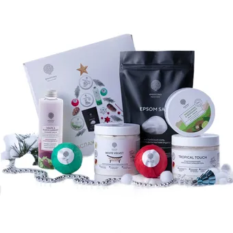 Этот набор создан для тех, кто считает ванну лучшим способом борьбы с испытаниями зимы. Восемь продуманных средств превращают уход за собой в полноценное домашнее спа: английская соль снимает напряжение и помогает расслабиться, крем-гель и крем-баттер деликатно ухаживают за кожей, а смеси для ванны и ароматные бомбочки дарят глубокое восстановление и комфорт.