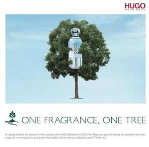В апреле стартовала всемирная кампания «One Fragrance, One Tree», организованная HUGO Fragrances, которая демонстрирует всему миру позицию экологической сознательности, присущую поклонникам ароматов HUGO. Суть кампании — в том, что, приобретая флакон HUGO Element или HUGO Man в специальной упаковке, покупатель вкладывает деньги в посадку одного дерева в тропических лесах Латинской Америки. Активировав специальный код, расположенный на флаконе, каждый купивший аромат может увидеть месторасположение своего дерева на карте мира.