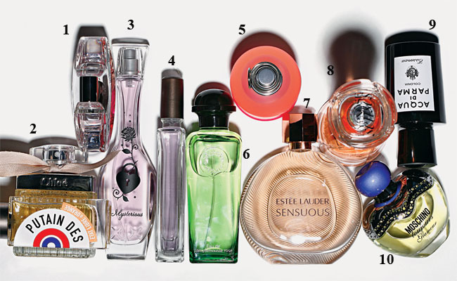 Ищи нужные ноты: 1. Miss Pucci от Emilio Pucci – иланг-иланг, жасмин, флердоранж, 2249 руб. 2. Chloé от Chloé – роза, амбра, кедр, 3690 руб. 3. XX Mysterious от Mexx – черная смородина, персик, яблоко, 1198 руб. 4. Bas de Soie от Serge Lutens – гиацинт и ирис, 4200 руб. 5. Amor Amor Delight от Cacharel – малина, ананас, розы, мускус, 1580 руб. 6. Eau de Pamplemousse Rose от Hermès – грейпфрут и роза, 4320 руб. 7. Мягкий древесный Sensuous от Estée Lauder, 3550 руб. 8. Шипровый Hypnôse Senses от Lancôme, 3500 руб. 9. Одеколон Colonia Essenza от Acqua di Parma, 3020 руб. 10. Toujours Glamour от Moschino – цветы и специи (перец, кардамон, жасмин, ландыш), 1740 руб. 11. Кожаный Putain des Palaces от Etat Libre d’Orange, 4950 руб.