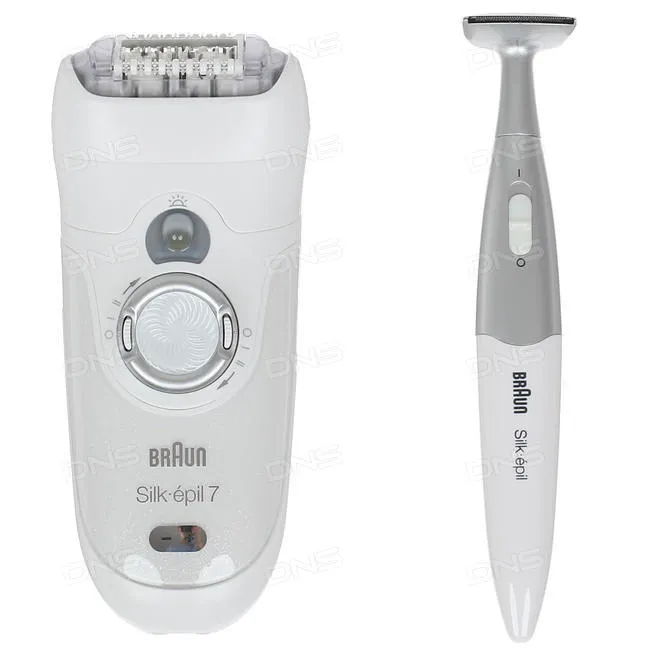 Это устройство содержит набор разных насадок для удаления волос: пинцеты, бритва, триммер, насадка для деликатной зоны. Повторяющая очертания тела головка с 48 пинцетами за считанные минуты удаляет все без исключения волоски. Триммер используется для депиляции в особо труднодоступных местах. Насадка для чувствительных участков воздействует более деликатно на нежные зоны тела, до минимума снижая болевые ощущения. Эпилятор можно использовать как на сухой, так и на влажной коже. Питание устройство получает от электросети и от аккумулятора, который держит заряд в течение полутора часов.