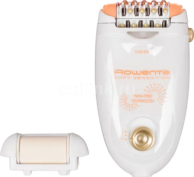 Этот эпилятор имеет 40 гибких чувствительных пинцетов, которые способны захватывать даже самые короткие и тонкие волоски. Удобная массивная ручка комфортно ложится в ладонь и не скользит даже в мокрых руках. Аппарат включает три дополнительные насадки: пилинг, насадка для деликатных зон и бритва. Герметичная конструкция позволяет использовать его в ванной, как и аккумулятор, заряда которого хватает на 40 минут.