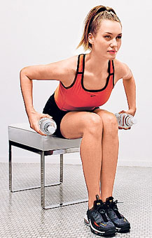 ![]() Вода в помощьЧтобы укрепить ягодичные мышцы, не обязательно обзаводиться тренажерами и гирями. Их с успехом заменят бутылки, заполненные водой. Попеременный подъем ног с литровой бутылкой воды. Стойка на коленях и локтях, спина прямая. Бутылку зажми в коленный сгиб рабочей ноги. Поднимай и опускай ее плавно, веди вверх, не отклоняя в стороны. 3 повтора по 12-15 раз для каждой ноги. Выпады с двумя наполовину заполненными 5-литровыми бутылками. Бутылки в руках за спиной. Рабочая нога на шаг вперед, опорная на полшага назад. Стопы не развернуты, носки смотрят вперед. Медленно опустись вниз почти до касания пола коленом опорной ноги. Поднимайся вверх, не сдвигая ног. Нога, стоящая впереди, сгибается под тупым или максимум прямым углом (иначе будет перегружен коленный сустав). 3 подхода по 12-15 раз для каждой ноги. Приседания с широкой постановкой ног с тем же весом. Отягощения – в руках за спиной, ноги на ширине плеч, носки в стороны. Плавно опускайся как можно ниже. Поднимаясь, ноги оставляй чуть согнутыми, выпрямлять их до упора не нужно. Две серии по 12-15 раз. |