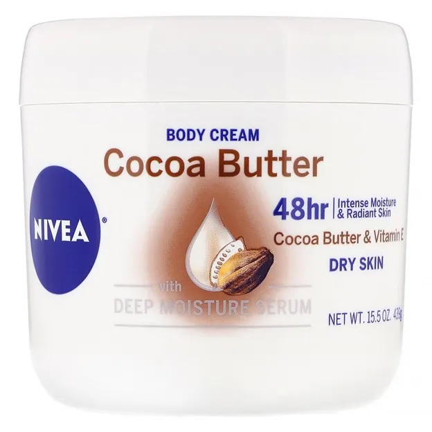 Какао-масло, польза которого доказана косметологами, в креме является основным ингредиентом. Помимо него в состав входят кокосовое и минеральное масло, а также витамин Е и сыворотка для глубокого увлажнения кожного покрова.