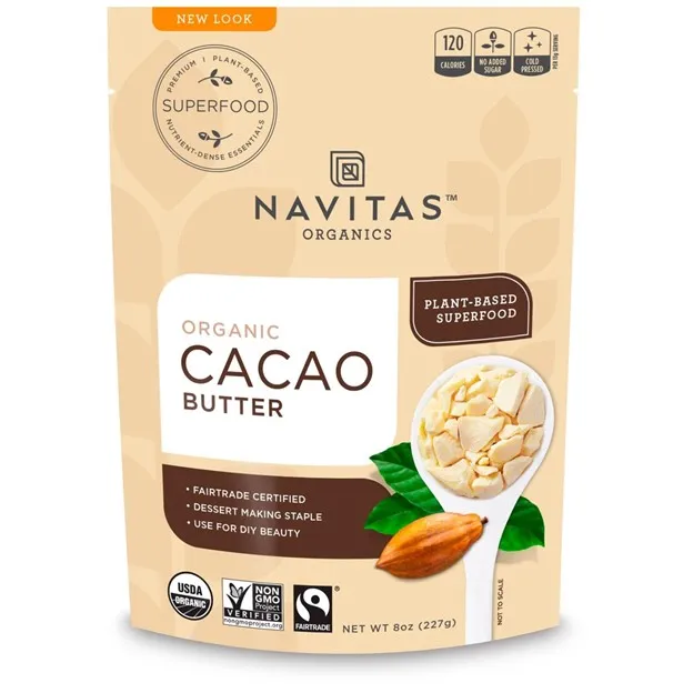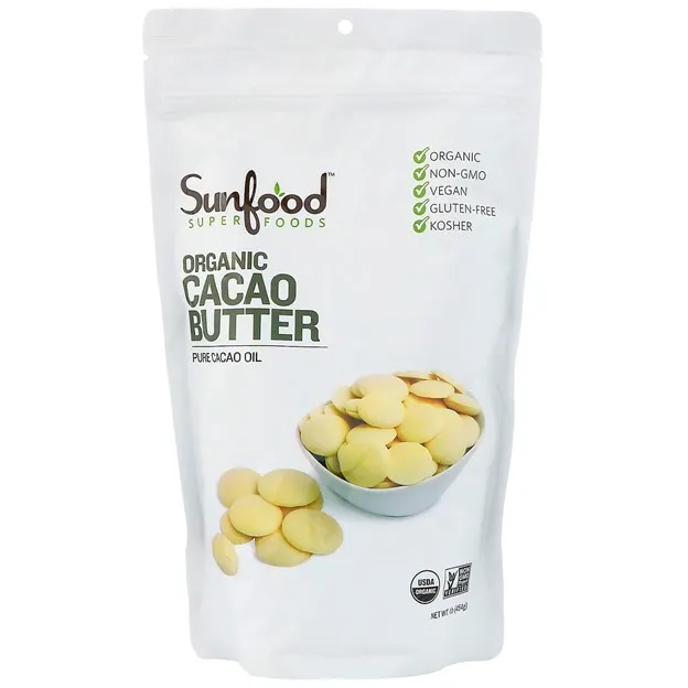 Чистое масло какао-бобов без дополнительных примесей. Производитель уверяет, что продукт не просто веганский, но и кошерный. Масло выпускается в форме дропсов. В его составе Омега-3, 6, 9 жирные кислоты, а также мононенасыщенные жиры.