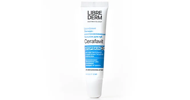 Бальзам из линейки Cerafavit от Librederm благодаря дерматологическому составу с церамидами, витамином F и комплексом масел глубоко восстанавливает кожу, успокаивает и устраняет дискомфорт. Использовать его можно не только на губах, но и вокруг них, а также в области носа.
