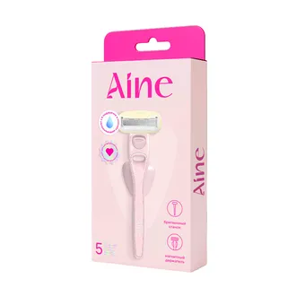 Деликатно и быстро избавиться от нежелательных волос на теле поможет бритвенный станок Aine с пятью ультратонкими лезвиями, которые обеспечивают идеальную гладкость на несколько дней всего за одно легкое движение.