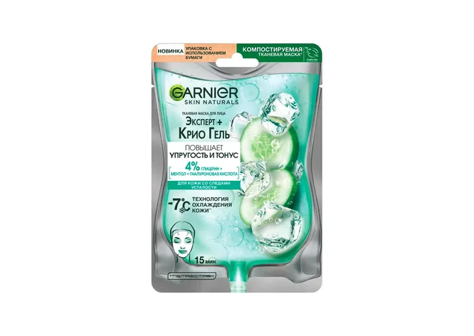 Чаще всего именно весной мы сталкиваемся с желанием взбодриться и придать тонус коже. Но если до отпуска или длинных праздничных выходных еще далеко, бороться с внешними проявлениями усталости поможет новая маска Garnier с крио-эффектом. Понижая температуру кожи, она работает как компресс и придает лицу отдохнувший вид. Сочетание гиалуроновой кислоты, глицерина и ментола в формуле сыворотки, которой пропитано лекало маски, помогает укрепить защитный барьер и удерживать влагу в лице.