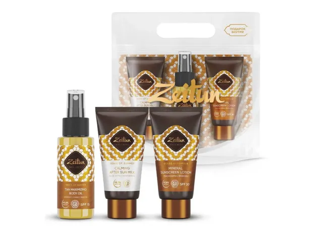 А это набор специально для любительниц загара! Рекомендуем использовать его спустя пару-тройку дней отдыха на пляже с продуктами с высоким фактором защиты, когда кожа уже адаптировалась к долгому пребыванию на солнце. Затем же в рутину можно включить эти средства для усиления и сохранения загара. Комбинируй солнцезащитное молочко с маслом для загара, а по возвращении с улицы используй восстанавливающее молочко с успокаивающим эффектом, которое снимает красноту и жжение.