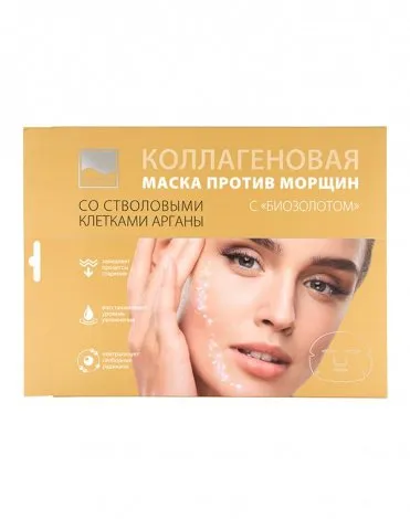 Коллагеновая маска против морщин для увядающей кожи с биозолотом и стволовыми клетками арганы, Beauty Style