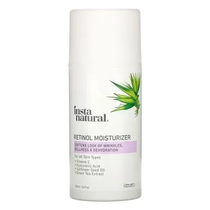 Омолаживающий крем для лица с ретинолом. Продается в стильной упаковке с изображением зеленых листьев. Такой же рисунок присутствует на белом флаконе. Закрывается крышкой из белого матового пластика. Имеется большой и, судя по отзывам покупательниц, удобный помповый дозатор.