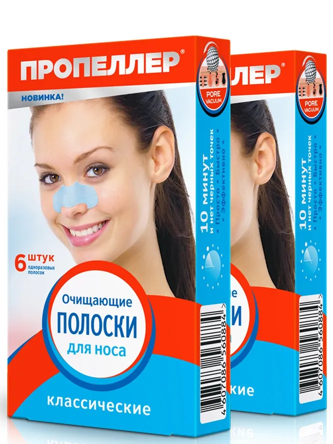 Пропеллер эффективно удаляет черные точки, особенно если предварительно распарить кожу. Полоски при контакте с водой покрываются липким слоем и быстро вытягивают черные точки и другие частички грязи.