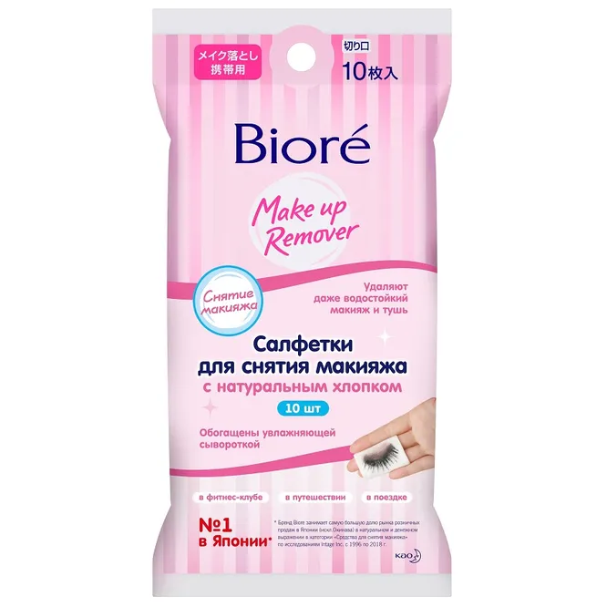 И, наконец, разберем последнюю группу средств, которую удобно брать с собой в путешествия – салфетки для снятия макияжа. Их можно проносить в ручную кладь и они не разольются во время переезда – вот вроде бы ключевые требования к такому формату средств. Но мы не забыли в нашем рейтинге и об их основной функции – качественном удалении макияжа.