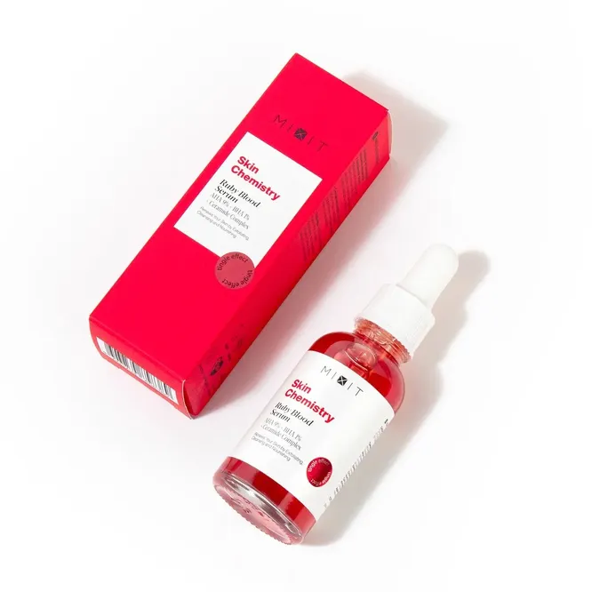 Красные «кровавые» сыворотки давно захватили соцсети — ведь селфи с ними на лице получаются особенно захватывающими. Недавно такая сыворотка появилась и у отечественного бренда Mixit. Нам нравится ее сбалансированная формула: наряду с комплексом из гликолевой, молочной, миндальной, азелаиновой и салициловой кислот в состав включены керамиды — для устранения сухости и быстрого восстановления липидного баланса. Средство подойдет для всех типов кожи, включая чувствительную.