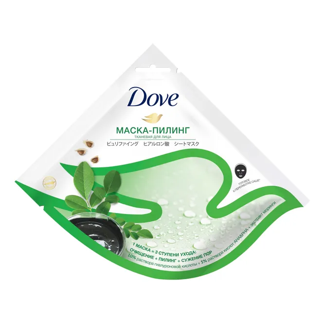 Тканевая маска-пилинг для лица Dove — уход за лицом 3-в-1
