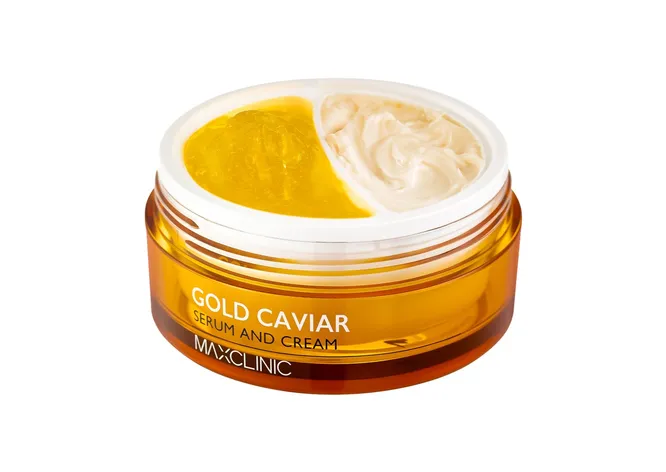 Если ты не привыкла к облегченным текстурам или хочешь обновить домашние запасы более комплексным продуктом, можно присмотреться к этой двойной баночке от южнокорейского бренда уходовой косметики Maxclinic. В одной половинке содержится гелевая сыворотка для увлажнения, а в другой — нежный крем с питательным эффектом. Средства можно использовать как вместе, так и отдельно, например, с утра используя только сыворотку, а перед сном «закрывая» ее плотным кремом.