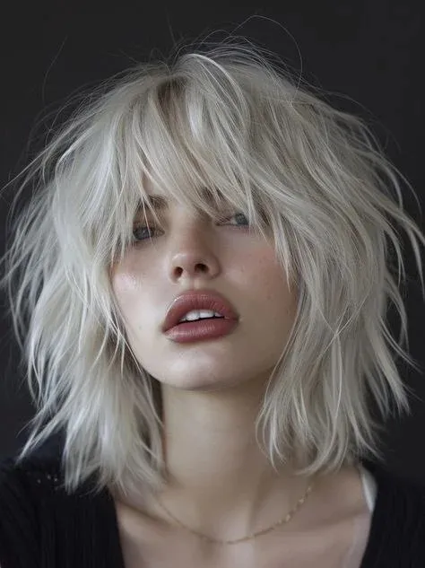 Если тебе по душе легкая небрежность и ощущение «я только что проснулась, но уже шикарна», попробуй шэг. Это многослойная, растрепанная стрижка с большим количеством слоев, которые создают объем и текстуру, особенно на макушке и по бокам. Часто шэг сочетается с рваной челкой, которая добавляет образу дерзости.
