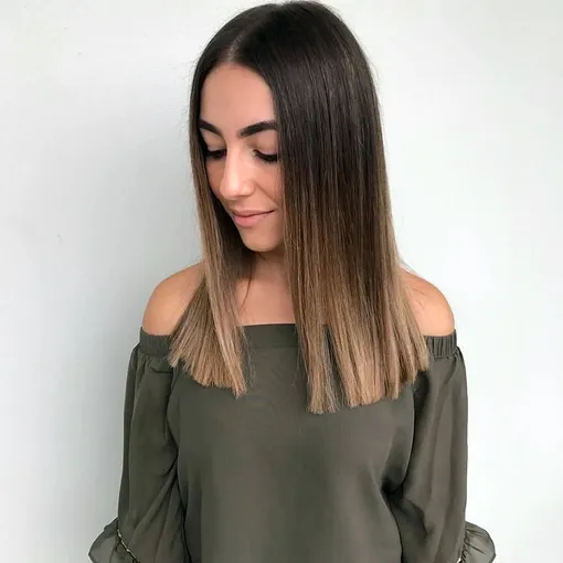 Если ты любишь длину и не хочешь возиться с укладкой, прямой срез с легкой градуировкой у лица — твой выбор. Это стрижка, которая выглядит ухоженно и стильно без лишних усилий. Волосы лежат ровно, выглядят плотными и здоровыми, а пара легких слоев у лица добавляет мягкости и женственности.