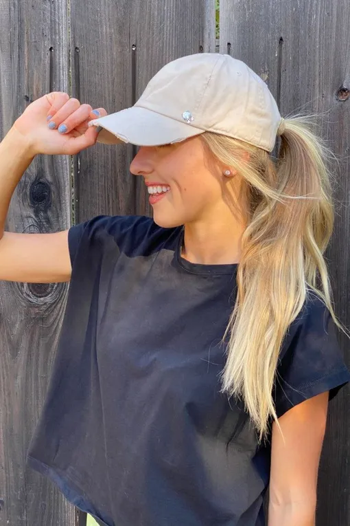 Быстро, практично и всегда уместно. Простой хвост, продетый через вырез сзади бейсболки, — это классика. Сделай его высоко или пониже, гладко или с немного пушистыми прядями. Такой образ уместен в любом случае, от пробежки до музыкального фестиваля. Хочешь добавить стиля? Тогда оставь одну прядь и обмотай ею резинку. Или надень серьги-кольца — они отлично дополняют простоту прически и делают образ завершенным.