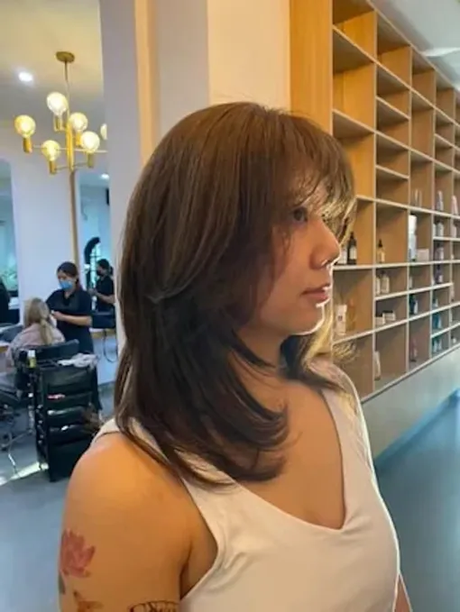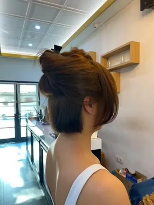 Парикмахер укорачивает только нижние пряди, примерно до уровня подбородка. Часто стилисты также добавляют челку или пряди у лица, чтобы прическа выглядела гармонично. Верхний слой волос при этом не трогают — он остается длинным. В итоге ты выглядишь как обладательница длинных слоистых волос ровно до того момента, пока не соберешь верхнюю часть в пучок или крабик. И вот он — секретный боб!