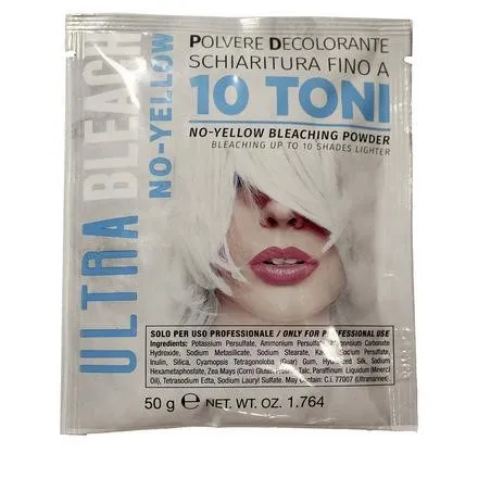 Осветляющий порошок голубого цвета способен быстро и безопасно на 6-7 тонов осветлить любые волосы. В качестве предварительной подготовки подходит также для нейтрализации цвета окрашенных волос. Порошок мелкой фракции не создает пыли в воздухе, легко смешивается с окислителем. Полученная масса наносится на сухие волосы на время, не превышающее 45 мин. Наличие микроскопических сине-фиолетовых частиц позволяет избежать в дальнейшем появления желтизны. Протеины пшеницы обеспечивают дополнительную защиту, питание и восстановление обесцвеченных прядей.