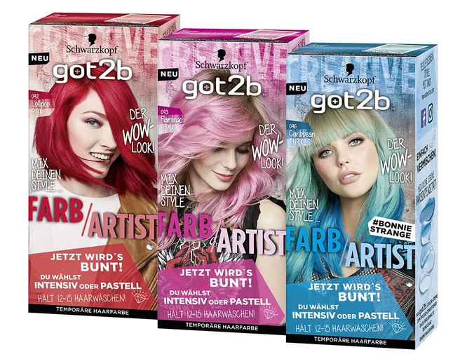Всемирно известный бренд Schwarzkopf выпускает не менее 5 основных линеек красящих средств. Краска Farb artist создана для взрывного цвета твоих волос: яркого розового или другого насыщенного оттенка: пастельно-голубого, синего, красного. Она надежно фиксируется на волосах, поэтому с легкостью выдерживает до 10 помывок.