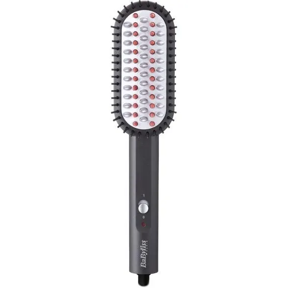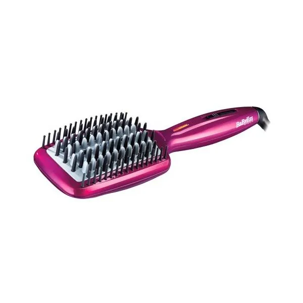 Расческа плойка для волос от бренда Babyliss с механическим управлением слайдерного типа рассчитана на работу с длинными и средними волосами. Она нагревается за три минуты до температуры 200°С. Световой индикатор сообщит о том, что устройство готово к работе.