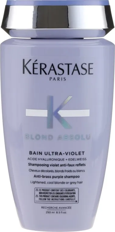 Очень часто светлые волосы, особенно обесцвеченные или мелированные, со временем желтеют. Вернуть им исходный цвет, не подвергая повторной процедуре осветления, поможет этот шампунь, в котором содержатся мельчайшие пигменты фиолетового цвета. Они изменяют желтый оттенок в сторону белого, в результате чего волосы приобретают платиновый отлив. Состав шампуня обогащен УФ-защитой, благодаря которой холодный подтон будет сохраняться дольше даже под лучами солнца.