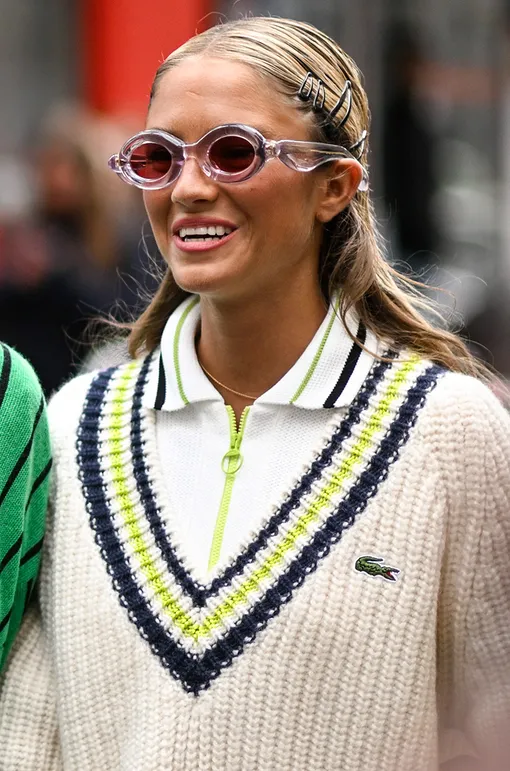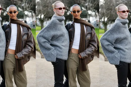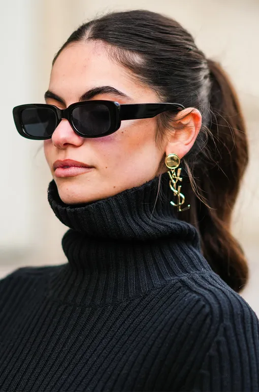 Высокий хвост красиво открывает шею и делает силуэт чище. Такая укладка подчеркивает вертикальную линию водолазки и визуально подтягивает лицо, делая его более выразительным.