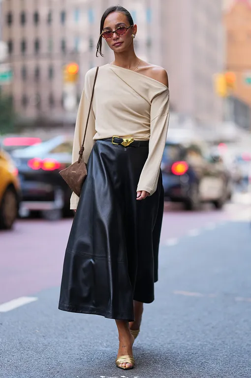 Если у топа асимметрия, то прическа должна поддерживать эту линию. Перебрось волосы на одно плечо, чтобы общая композиция стала более динамичной.