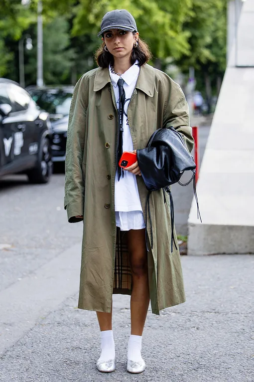 Тренч + распущенные волосы и кепка