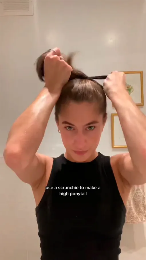 - Расчеши волосы и завяжи их в высокий хвост на макушке