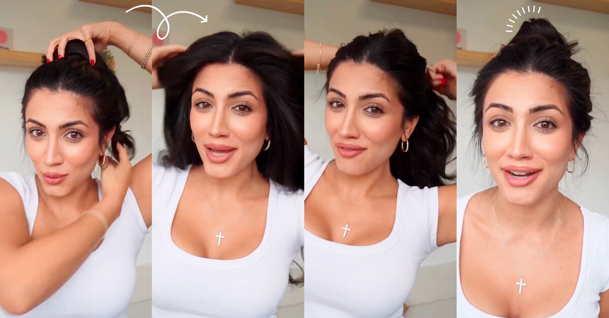 - Закрепи пучок не резинкой, а парой небольших крабиков.