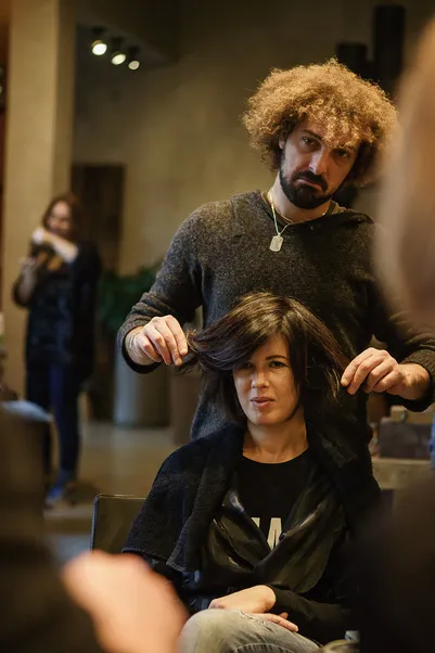Устоять было невозможно, и мы попросили Даниэле продемонстрировать нам шатуш для брюнеток: редкое и сложное окрашивание, которое не все берутся делать. Он обошелся даже без смывки! Обычно именно этот процесс депигментирования волос убивает их, но иного способа «выйти» из черного тонка, казалось бы, нет... Оказалось, есть.