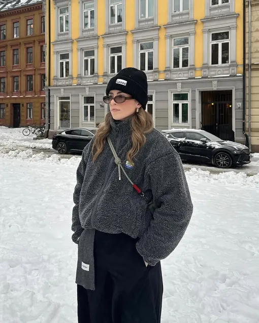 Кто сказал, что челка и шапка несовместимы? Выбирай объемную бини или капор, которые смещаются на затылок, позволяя челке эффектно выглядывать. Или примерь модную оверсайз балаклаву, которая выгодно подчеркнет линию бровей.
