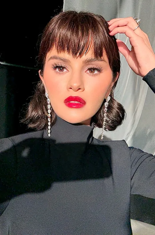 Недавно Селена Гомес удивила поклонников новым образом: она предстала с длинной челкой до бровей, которая настолько тонко сфилирована, что частично «просвечивает» лоб. Такую челку называют «медузой»: она укорочена к вискам, обрамляет лицо, мягко скрывает линию роста волос и смягчает черты лица.