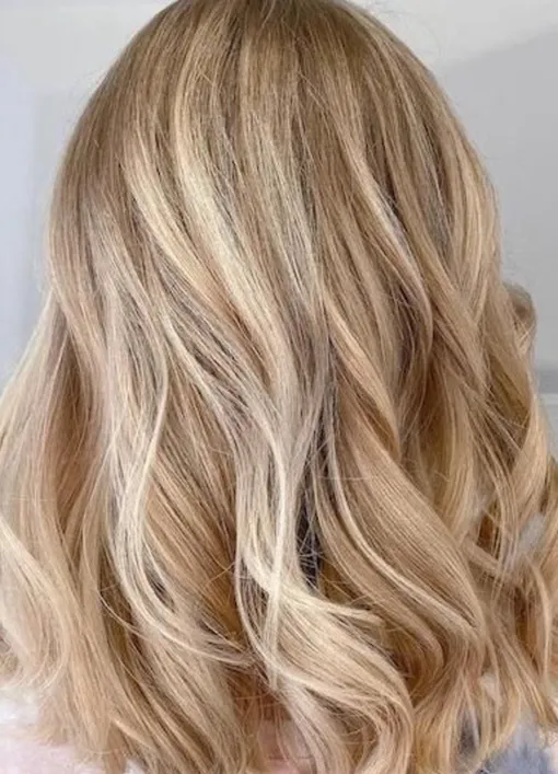 Этот оттенок солнечный, с теплыми золотистыми тонами, как в тренде золотистого медового балаяжа. Плавные выгоревшие пряди, как у Сары Джессики Паркер, создают естественный эффект. Добавь кварц или медь, чтобы получить свечение изнутри, которое оживает на свету.