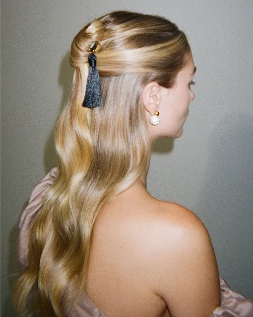 Привнеси в образ динамики и фактуры с помощью игривых заколок с кисточками. Они добавят легкости даже строгому total black. Бери на заметку этот беспроигрышный способ оживить базовый наряд без лишних усилий.