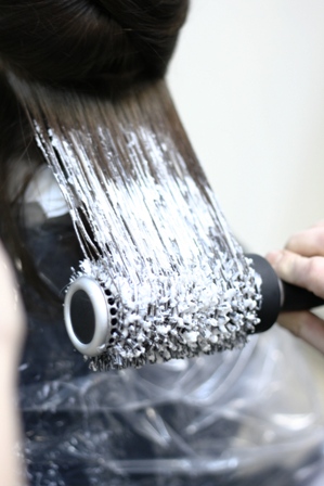 | Несколько крупных прядей осветляем мягким кремом Lighten Up. Мастер использует технику Color Brush, при которой краситель наносится брашингом. Переходы получатся плавными, а конечный результат более привлекательным.