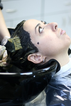 100% закрашивание седины обеспечивают только стойкие красители. Для Маши оптимально подходит профессиональный The Color, в котором содержится всего 1.5% аммиака. Чтобы получить естественный, но при этом яркий цвет, мастер смешивает 3 оттенка коричневого – теплый, холодный и нейтральный. | Сначала краситель наносится на натуральные корни, а через 5 минут прямо в мойке распределяется по всей длине волос. Время выдержки – около 35 минут, после чего краситель смывается специальным шампунем. |