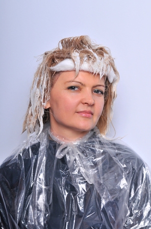 | Затем смыли порошок шампунем для окрашенных волос Splendore di Flore di Lino и сделали тонирование при использовании оттенков 9.3 и 7.14 ColorWear в пропорции 1:2.