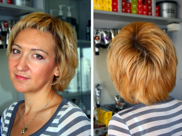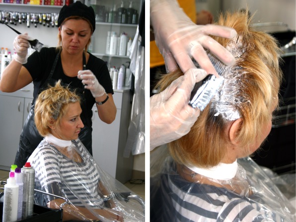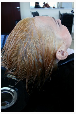 | Поэтому для начала волосы осветляют крем-красителем Lighten Up. Он содержит гораздо меньше аммиака, чем осветляющий порошок, и потому достаточно безопасен. Крем наносится на корни на 15 минут, затем — по всей длине. Время выдержки для Аниного уровня — около 40 минут. |