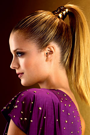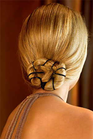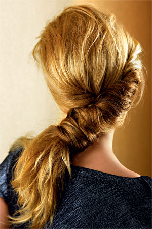 ![]() | Низкий пучок Обыденная и простая прическа становится гораздо интереснее, если переплести пучок тонкой эластичной лентой. Собери волосы в хвост (не затягивая сильно) у основания шеи и затем по спирали обмотай его тонкой лентой сверху вниз в одну сторону и снизу вверх – в другую: получится крест-накрест. Или попробуй использовать несколько эластичных резинок, закрепив их по всей длине волос на одинаковом расстоянии друг от друга. Теперь сделай пучок, обмотав хвост вокруг его основания и зафиксировав шпильками. |