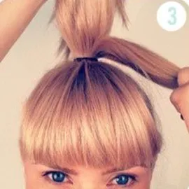 Мы также нашли стильный вариант новогодней прически для девушек, которые носят челку.